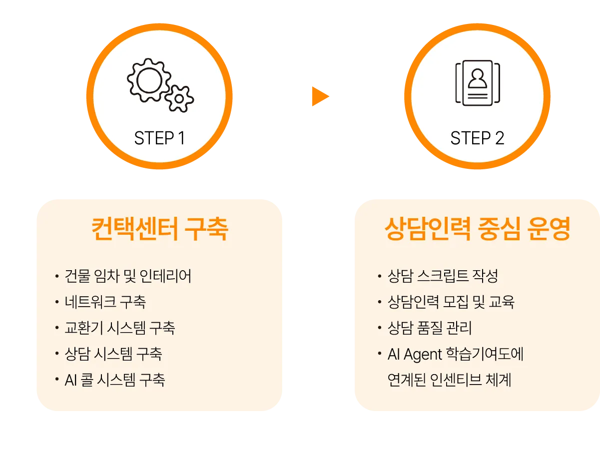 고객사 비즈니스에 특화된 컨택센터로 컨택센터 구축부터 운영까지 번거로움을 해소하고 현업의 중요한 핵심 역량에 집중할 수 있도록 도와드립니다.